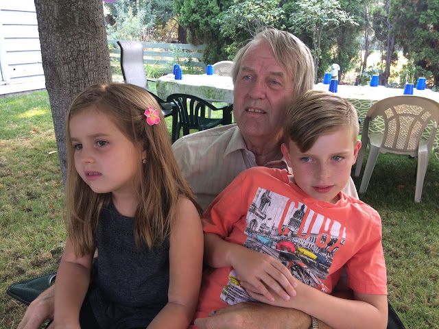 Grandpa came back from Hawaii, helping uncle Ken, we celebrated his birthday first at home and then at Auntie Trudy's